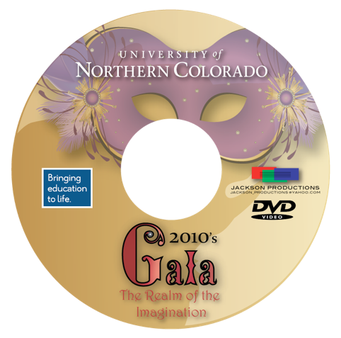 This was the DVD label for the 2010 UNC Gala Concert. The DVD label layout was designed by Jackson Productions with the graphics taken from the original program designed by Ann Martinez Dunn of Greeley Colorado.